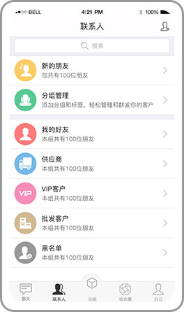 轻松查看所有好友的动态加上强大的搜索引擎让你轻松掌握客户及上家动态